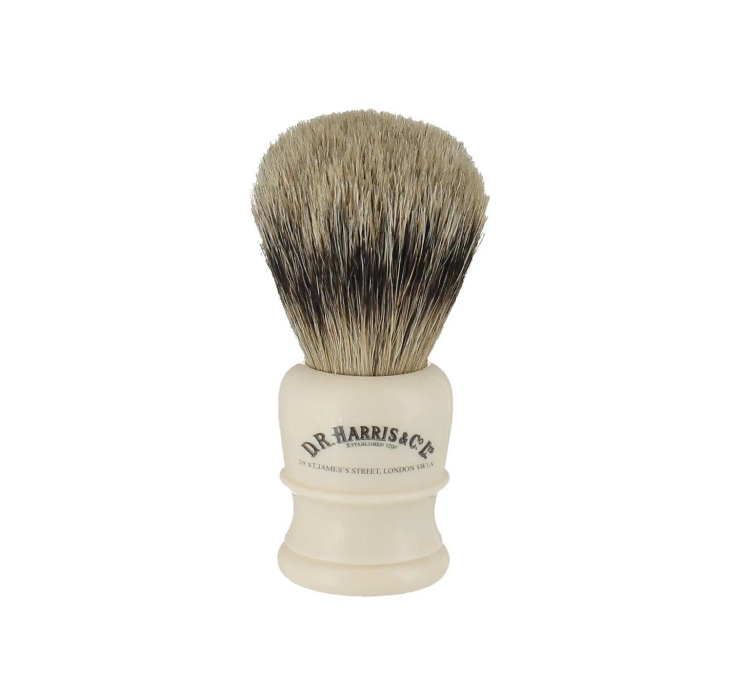 A range of three shaving brushes – H1, H2 and H3. Each embossed with the D.R. Harris logo and presented in a handsome box. All three models are made with the finest best grade badger hair that creates a lather far superior to that of an ordinary bristle brush. The handle is made of a white imitation ivory.