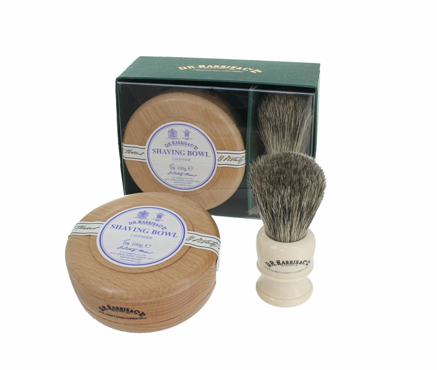 This luxurious wet-shaving gift contains a traditional Shaving Bowl in hand-turned beech wood paired with a high quality shaving brush which has been designed and made for D. R. Harris exclusively by one of the top British brush makers. The solid Lavender scented shaving soap is of the finest quality and has been triple-milled to increase the richness and luxuriousness of the lather. Incredibly economical, each soap will last for several months.